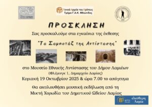 Έκθεση «Τα Σαμποτάζ της Αντίστασης» -Μουσείο Εθνικής Αντίστασης Δήμου Λαμιέων 19 Οκτωβρίου – 30 Νοεμβρίου 2025