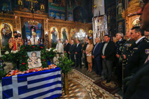 Το παρών στην Θεία Λειτουργία και στην επιμνημόσυνη δέηση έδωσαν, οι Βουλευτές Φθιώτιδος κ. Απόστολος Καραναστάσης, κ. Χρήστος Σταϊκούρας, ο Αντιπεριφερειάρχης Φθιώτιδος κ. Ευθύμιος Καραΐσκος, ο Δήμαρχος Λαμιέων κ. Νικόλαος Σταυρογιάννης με μέλη του Δημοτικού Συμβουλίου, ο Διοικητής του ΚΕΥΠ Ταξίαρχος Βασίλειος Μπέλλος συνοδευόμενος από Αξιωματικούς του Στρατού, ο Περιφερειακός Διοικητής Πυροσβεστικών Υπηρεσιών Στερεάς Ελλάδας, Αρχιπύραρχος Νικόλαος Σπαής, η τ. Βουλευτής Φθιώτιδος κ. Ελένη Μακρή, εκπρόσωποι της ΕΛ.ΑΣ, του Λιμενικού Σώματος και άλλων φορέων του τόπου , καθώς και πλήθος πιστών.