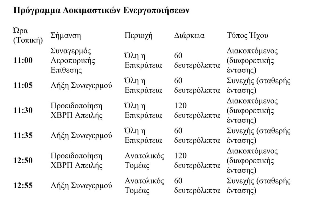 Σημείωση: Ταυτόχρονα με την ήχηση των σειρήνων, θα ηχήσουν και οι καμπάνες των Ιερών Ναών με σειρά βραχέων κωδωνισμών σε γρήγορο ρυθμό, διάρκειας τριών (3) λεπτών.