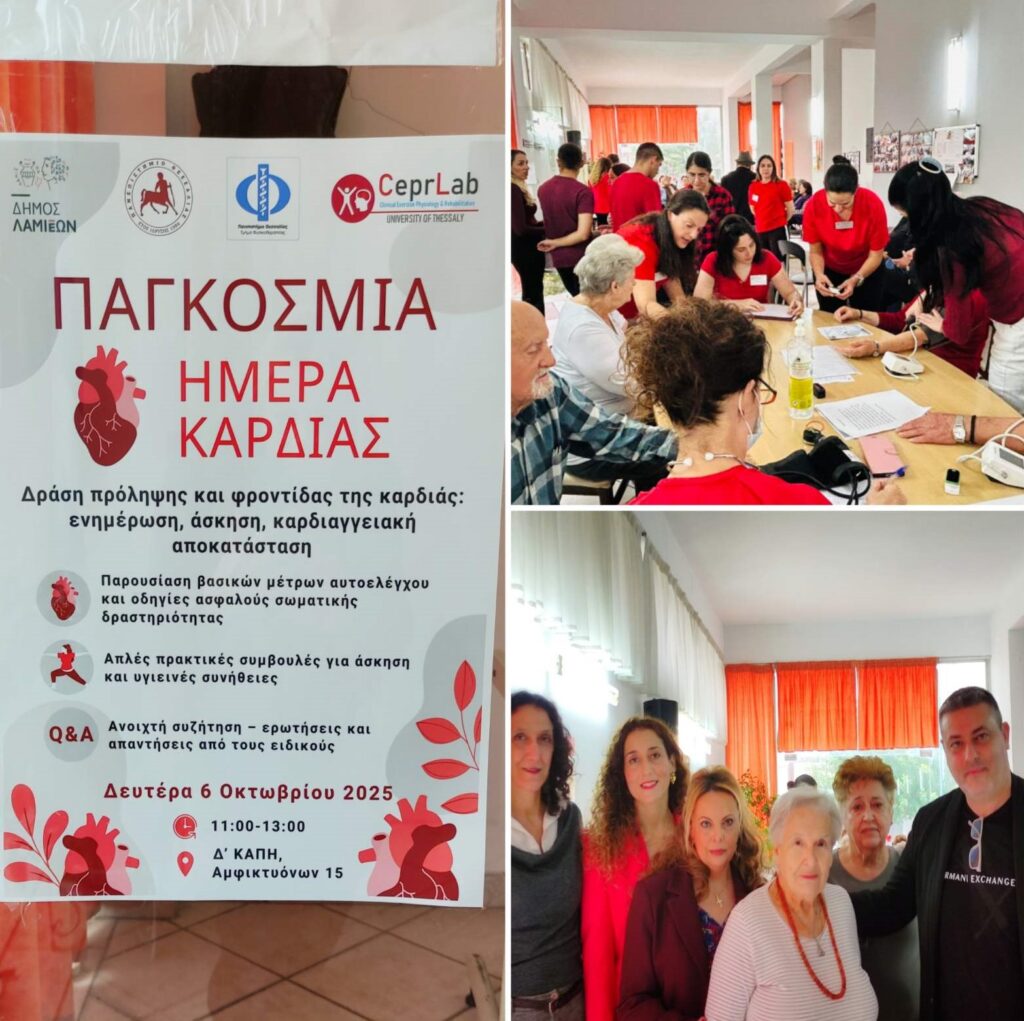 Ο Δήμος Λαμιέων σε συνεργασία με το Ερευνητικό Εργαστήριο Κλινικής Φυσιολογίας της Άσκησης και Αποκατάστασης του Τμήματος Φυσικοθεραπείας (Σχολή Επιστημών Υγείας) του Πανεπιστημίου Θεσσαλίας, με αφορμή την Παγκόσμια Ημέρα Καρδιάς που έχει καθιερωθεί από τον Παγκόσμιο Οργανισμό Υγείας να εορτάζεται την 29η Σεπτεμβρίου, διοργάνωσε τη Δευτέρα 6 Οκτωβρίου 2025, μια ξεχωριστή δράση στο Δ΄ Κ.Α.Π.Η.