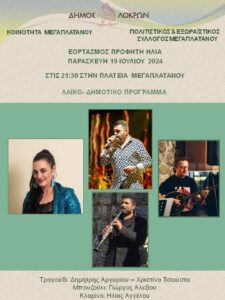 Ο Δήμος Λοκρών τιμά τον εορτασμό του προφήτη Ηλία με θρησκευτική πανήγυρις στον Μεγαπλάτανο του Δήμου Λοκρών την Παρασκευή 19 Ιουλίου.