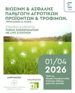 Ημερίδα για τη Βιώσιμη και Ασφαλή Παραγωγή Αγροτικών Προϊόντων και Τροφίμων την Τετάρτη 1 Απριλίου