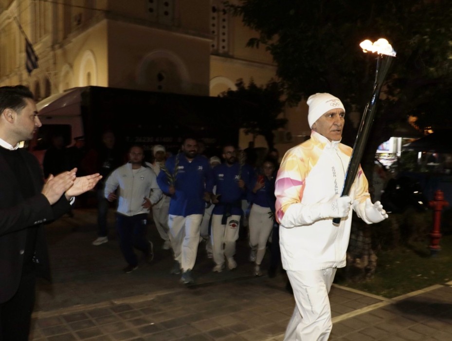 Τη Φλόγα στον βωμό μετέφερε ο Παναγιώτης Γιαννάκης, μία από τις εμβληματικές φυσιογνωμίες του ελληνικού μπάσκετ, ο οποίος με την προσφορά και το ήθος του συνεχίζει να εμπνέει τις νεότερες γενιές.