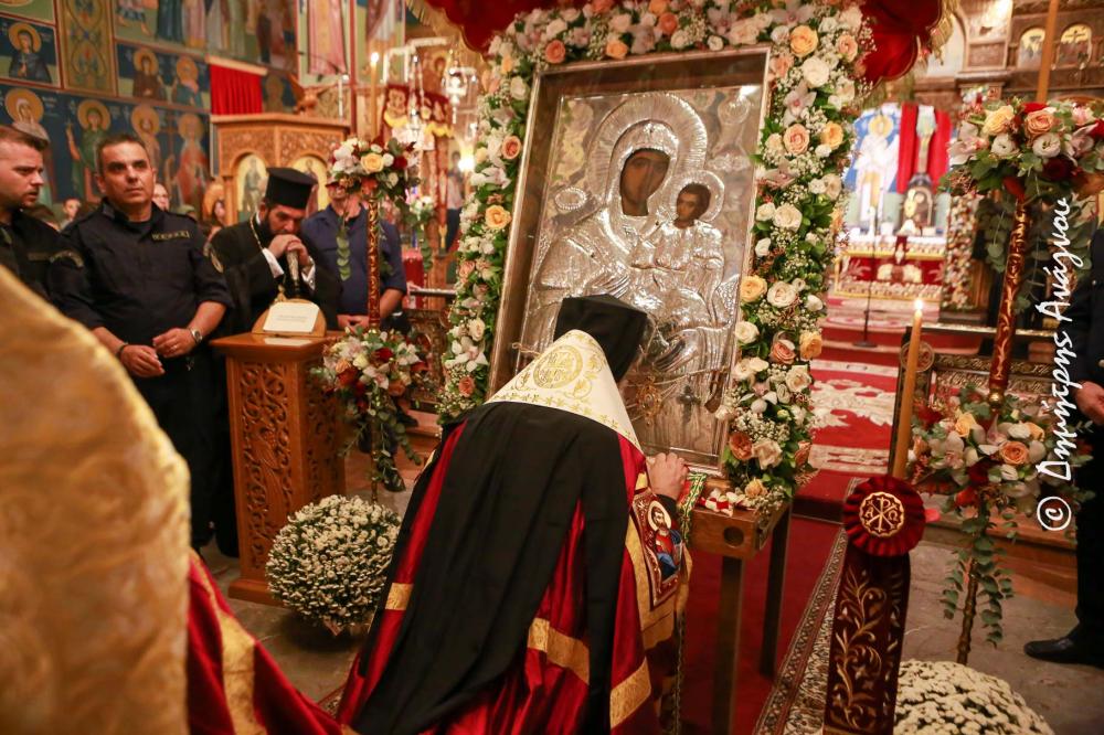 Μετά την Αρχιερατική Δέηση, η Ιερά Εικόνα μεταφέρθηκε με παλλαϊκή πομπή στον Ιερό Ναό, όπου τελέσθηκε η Επίσημη Δοξολογία υπό του Σεβασμιωτάτου Μητροπολίτου Φθιώτιδος κ. Συμεών.
