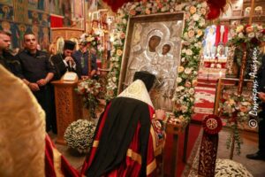 Αυτό γιορτάζουμε σήμερα. Η Παναγία μας να μας σκεπάζει όλους μέσα στην αμαρτωλότητά μας, μέσα στις αδυναμίες μας. Είμαστε ο λαός της Παναγίας, είμαστε τα παιδιά της Παναγίας και να την παρακαλούμε να σκεπάζει το Γένος και να φωτίζει και αυτούς τους «καημένους», που κατά καιρούς λένε εξυπνάδες και θέλουν να αλλάξουν την ιστορία και θέλουν να μας «εκμοντερνίσουν». Βλέπουμε τον εκμοντερνισμό στους ανθρώπους που ψάχνουν φαγητό μέσα στα σκουπίδια..».