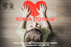 Το νέο πρόγραμμα που έχει τίτλο«Κοντά στο παιδί» δημιουργήθηκε, έχοντας σαν στόχο την απασχόληση των παιδιών κατά την περίοδο της διαμονής τους στο σπίτι, μέσα από σειρά εκπαιδευτικών δραστηριοτήτων. Οι δραστηριότητες αυτές έχουν σχεδιαστεί και υλοποιούνται από τουςεκπαιδευτικούς των ΚΔΑΠ του Δήμου μας και αποτελούν μέρος ενός ολοκληρωμένου σχεδιασμού προγραμμάτων απασχόλησης τα οποία έχουν τροποποιηθεί και προσαρμοστεί έτσι ώστε να μπορούν να πραγματοποιούνται με τηλεδιάσκεψη.
