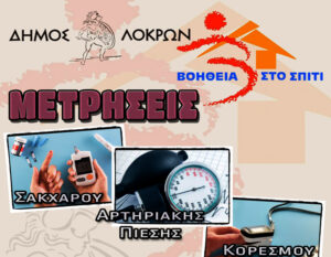 Ο Δήμος Λοκρών σε συνεργασία με το πρόγραμμα Βοήθεια στο Σπίτι του Δήμου θα πραγματοποιήσουν μετρήσεις ζωτικών σημείων στα ΚΑΠΗ του Δήμου Λοκρών: