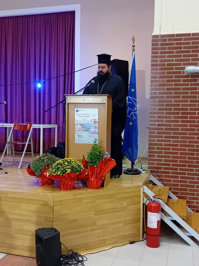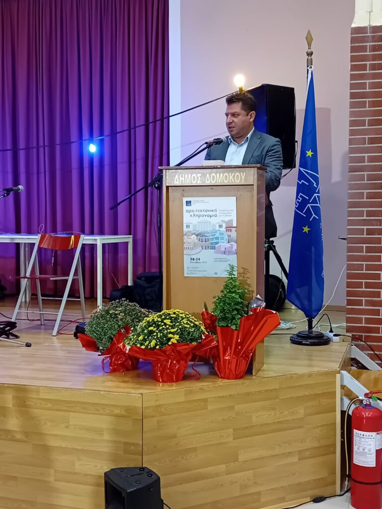 Την εκδήλωση προλόγισε ο Δήμαρχος Δομοκού κ. Χαράλαμπος Λιόλιος, επισημαίνοντας τη σημασία της πολιτιστικής κληρονομιάς για την τοπική κοινωνία. Ανέφερε ότι η διατήρηση και η ανάδειξη των μνημείων, των παραδόσεων και των ιστοριών του τόπου αποτελεί ταυτόχρονα καθήκον προς το παρελθόν και επένδυση για το μέλλον, τονίζοντας ότι ο πολιτισμός ενώνει, διαμορφώνει την ταυτότητα της κοινότητας και εμπνέει τις επόμενες γενιές.