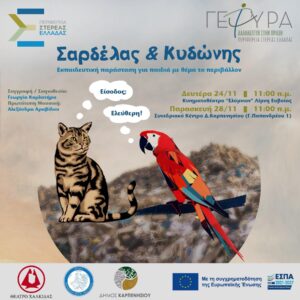 Η Περιφέρεια Στερεάς Ελλάδας, με αφορμή την 27η Νοεμβρίου, Παγκόσμια Ημέρα Θεάτρου στην Εκπαίδευση, διοργάνωσε την πρωτότυπη εκπαιδευτική θεατρική παράσταση:“Σαρδέλας & Κυδώνης”, ένα έργο με βαθύ οικολογικό μήνυμα που απευθύνεται σε παιδιά και σχολεία.