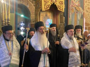 Παρέστησαν οι Σεβασμιώτατοι Μητροπολίτες Καρυστίας και Σκύρου κ. Σεραφείμ, Διοσπόλεως κ. Εμμανουήλ (εκ του Πατριαρχείου Αλεξανδρείας), Πειραιώς κ. Σεραφείμ, Ειρηνουπόλεως κ. Νίκανδρος (εκ του Οικουμενικού Πατριαρχείου) Μεσσηνίας κ. Χρυσόστομος, Γρεβενών κ. Δαβίδ, Φθιώτιδος κ. Συμεών, Θεσσαλονίκης κ. Φιλόθεος, Γόρτυνος και Μεγαλοπόλεως κ. Νικηφόρος, Κορίνθου κ. Παύλος και οι Θεοφιλέστατοι Επίσκοποι Σκοπέλου κ. Νικόδημος και Σκιάθου κ. Ιωάννης-Αρχιγραμματεύς της Ιεράς Συνόδου της Εκκλησίας της Ελλάδος, ο οποίος εκπροσώπησε τον Παναγιώτατο Οικουμενικό Πατριάρχη κ.κ. Βαρθολομαίο.