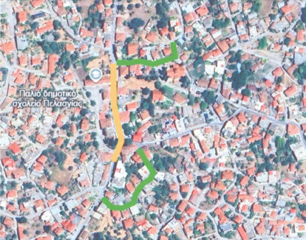 - Δημοτική Κοινότητα Πελασγίας: επαρχιακή οδός Ραχών – τμήμα της οδού έμπροσθεν Κεντρικής Πλατείας Πελασγίας (Σχεδιάγραμμα 2)