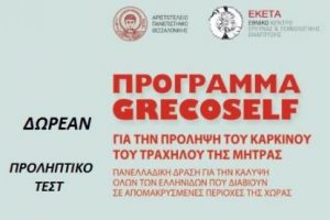 Το Αριστοτέλειο Πανεπιστήμιο Θεσσαλονίκης σε συνεργασία με το Εθνικό Κέντρο Έρευνας και Τεχνολογικός Ανάπτυξης διοργανώνει την Τετάρτη 28 Ιουνίου 2017 και ώρες 09.00-15.00 στο Κέντρο Υγείας Αμφίκλειας δωρεάν προληπτικό έλεγχο για την πρόληψη του καρκίνου της μήτρας στα πλαίσια του προγράμματος «Grecoself».