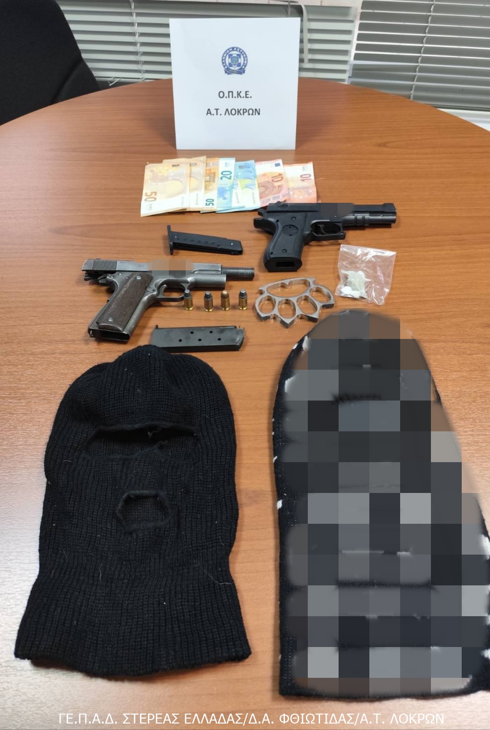 Από αστυνομικούς της Ο.Π.Κ.Ε. του Αστυνομικού Τμήματος Λοκρών, στο πλαίσιο στοχευμένων αστυνομικών ελέγχων, συνελήφθησαν στις 04-10-2025 το βράδυ στην ευρύτερη περιοχή της Αταλάντης Φθιώτιδας (επί του Π.Α.Θ.Ε. – ρεύμα πορείας προς Αθήνα), τρείς (3) ημεδαποί, κατηγορούμενοι για παράβαση της νομοθεσίας περί όπλων.