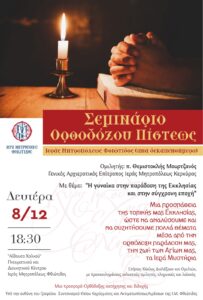 Το Σεμινάριο Ορθοδόξου Πίστεως είναι ανοιχτό για το κοινό.