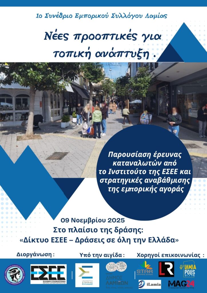 Νέες προοπτικές για τοπική ανάπτυξη είναι ο τίτλος του 1ου συνεδρίου του Εμπορικού Συλλόγου Λαμίας θα πραγματοποιηθεί στις 9 Νοεμβρίου 2025.