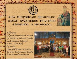 Ανακοινώνεται στο χριστεπώνυμο πλήρωμα, ότι συνεχίζονται οι εγγραφές στη Σχολή Βυζαντινής Μουσικής «Γερμανός ὁ Μελωδός» της Ιεράς Μητροπόλεως Φθιώτιδος.
