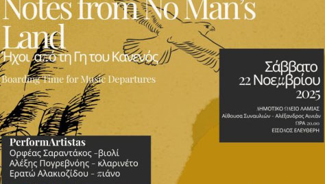 Δημοτικό Ωδείο Λαμίας: Notes from No Man’s Land / Ήχοι από τη Γη του Κανενός – Boarding Time for Music Departures