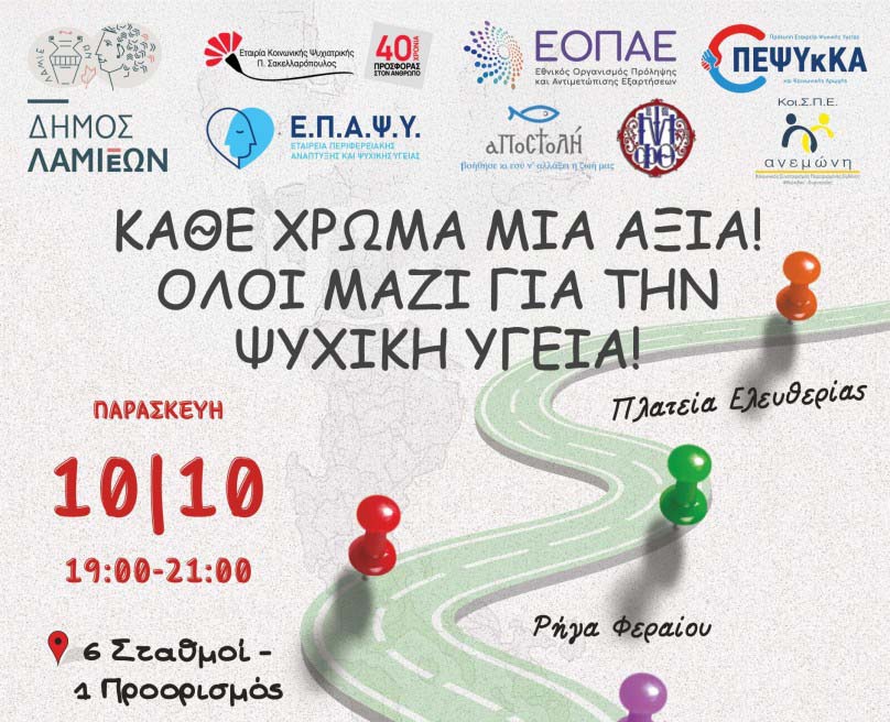 10 Οκτωβρίου/Παγκόσμια Ημέρα Ψυχικής Υγείας – Κάθε χρώμα μια αξία! Όλοι μαζί για την ψυχική υγεία!