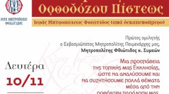 Η Ιερά Μητρόπολη μας βρίσκεται στην ευχάριστη θέση να ανακοινώσει, ότι κατά την φετινή εκκλησιαστική χρονιά και στα πλαίσια της πνευματικής προσφοράς και κατήχησης, θα διοργανωθεί μια νέα ιεραποστολική προσπάθεια, το Σεμινάριο Ορθοδόξου Πίστεως, με πρωτοβουλία του Σεβασμιωτάτου Ποιμενάρχου μας, Μητροπολίτου Φθιώτιδος κ. Συμεών. Το Σεμινάριο αυτό θα διενεργείται, κάθε δεκαπενθήμερο, με τόπο συνάντησης το …