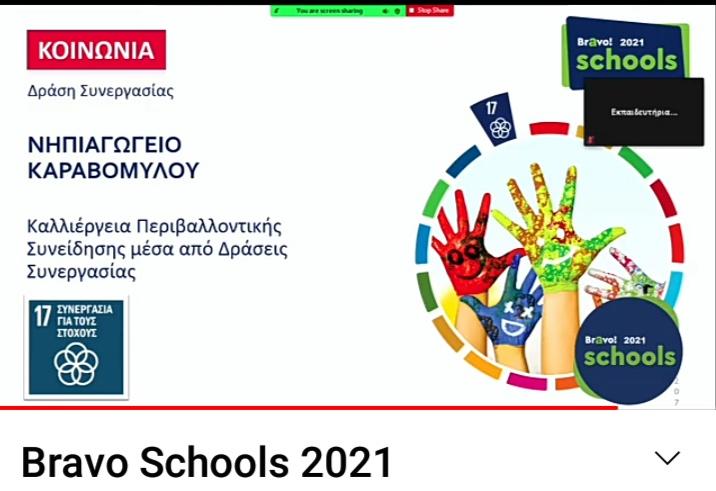 Βράβευση του Νηπιαγωγείου Καραβομύλου στον Πανελλήνιο Σχολικό Διαγωνισμό Bravo Schools