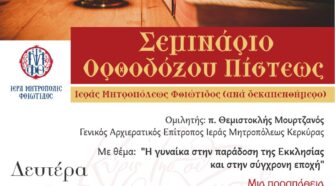 Με την χάρη του Θεού, η Ιερά Μητρόπολη μας, με πρωτοβουλία του Σεβασμιωτάτου Ποιμενάρχου μας, Μητροπολίτου Φθιώτιδος κ. Συμεών, συνεχίζει τις Συναντήσεις του Σεμιναρίου Ορθοδόξου Πίστεως, που ήδη ξεκίνησε για την φετινή κατηχητική χρονιά. Σήμερα Δευτέρα 8 Δεκεμβρίου 2025 στις 18:30μ.μ., στην «Αίθουσα Χαλκού» του Πνευματικού και Διοικητικού Κέντρου της Ιεράς Μητροπόλεως Φθιώτιδος, στην συμβολή …